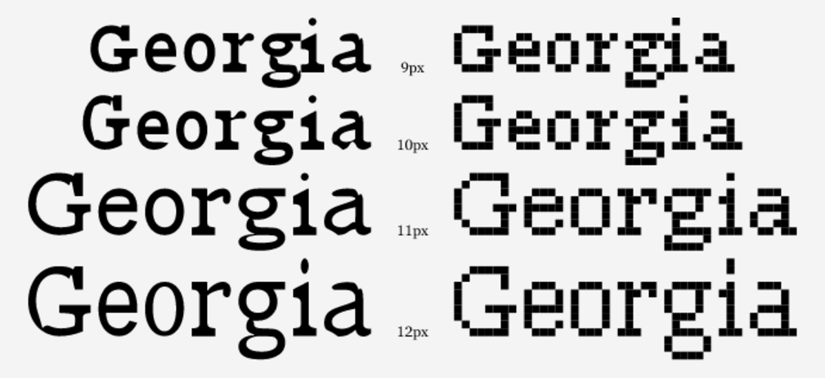 Wraz z wzrostem rozdzielczości monitorów, najczęściej stosowany na stronach internetowych 10-12 punktowy tekst stał się nieczytelny. Obecnie, sugerowana wartość to 16 punktów. W tekście drukowanym, rozmiar tekstu odpowiadający 8-10 punktom jest uzasadniony oszczędnością miejsca i faktem, iż odbiorca czyta z mniejszej odległości, niż miałoby to miejsce na monitorze.
