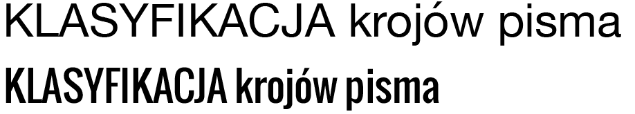 Demi Condensed – lekko ściśnięty, Semi Bold – lekko pogrubiony, Extra Black – bardzo gruby, Ultra Italic – mocno pochylony.