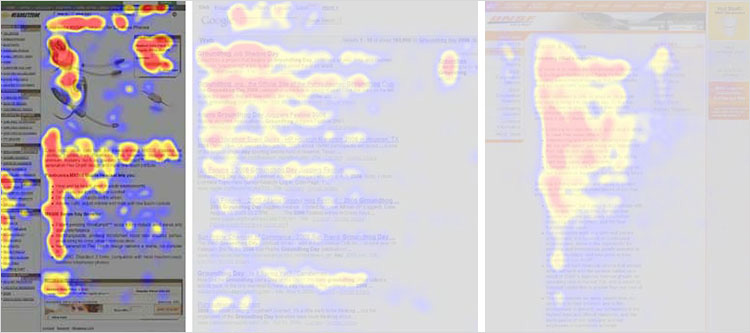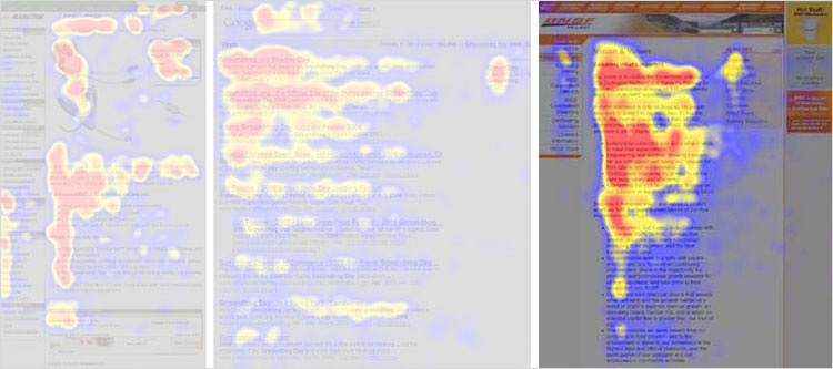 Eye-tracking heat maps, opublikowane przez Nielsen Norman Group, firmę zajmującą się consultingiem ux, opisują trzy schematy czytania: