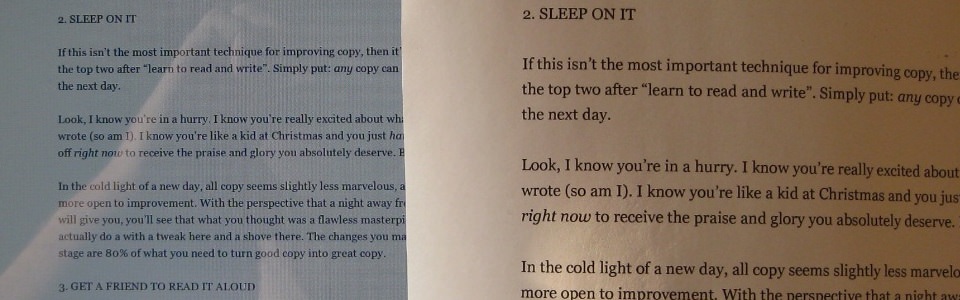Warto zwiększyć domyślną interlinię tekstu, by kolumna wydawała się lżejsza. Im mniejszy rozmiar tekstu, tym większą interlinię będzie można zastosować dla poprawienia czytelności. Granicę zwiększania domyślnej interlinii stanowi moment, w którym zaburzona zostaje optyczna szarość tekstu.